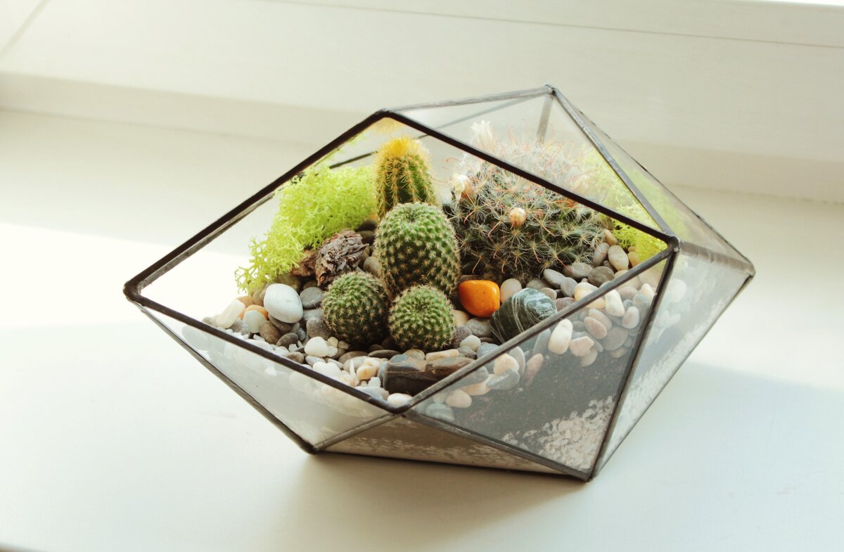 2. кактусы + суккуленты: эхеверия, красула, хавортия, алое, очиток, рипсалис и другие;