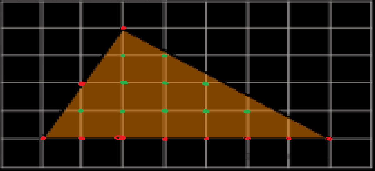 Все задания взяты с сайта https://oge.sdamgia.ru/ На клетчатой бумаге с размером клетки 1×1 изображён треугольник. Найдите его площадь Задача 1 Странно, но большинство преподавателей не говорят о формуле Пика S=В+Г/2 - 1, и заставляют учеников учить формулы всех фигур. Как решать такие задания с помощью этой формулы? В - это углы внутри треугольника (они отмечены зелёным) Г - это углы которые пересекает сторона треугольника (они отмечены красным). Получается, внутри данного треугольника 10 углов, и его стороны пересекают 10 углов. S = 10 + 10/2 - 1 = 14 Советую попробовать самим решить задачи с помощью этой формулы. Формула подходит для любой фигуры. Задача 2 На клетчатой бумаге с размером клетки 1x1 изображён треугольник ABC. Найдите длину его высоты, опущенной на сторону AC. Думаю всем понятна эта задача, из точки В опускается высота на сторону АС. Не забывайте, высота со стороной всегда даёт угол в 90 градусов Т.к размер 1 клетки равен 1, то высота равна 4 Задача 3 На клетчатой бум