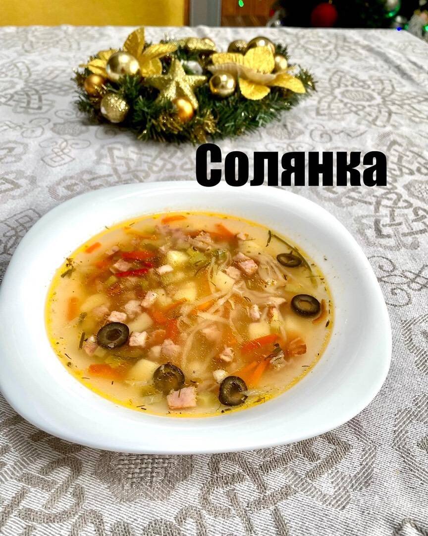 ⠀Богатый суп с ярким вкусом поможет бодрее вернуться к жизни после похмелья 😁 ⠀ Ставьте лайк ❤️, а я продолжаю ⠀ Приятного аппетита 😋 ⠀ #еда #супдня #солянка Ингредиенты: воды💧, небольшая пластинка свиных рёбер, Картофель - 🥔, Морковь – 🥕, Болгарский перец – 🫑, Луковица 🧅, Чеснок – 🧄, Колбаса Краковская , Маринованная капуста - 🥬, Острого перца, сухого или маринованного, Соленый огурец - 🥒, Огуречного рассола, Чёрных маслин, Томатной пасты или соуса, Соль, перец, зелень и любимые пряности Способ приготовления: Заливаю холодной водой рёбра и довожу до кипения. В кипящем бульоне снимаю пену и каждые 10 минут добавляю: 🔸Лук, чеснок 🔸 Нарезанный кубиками картофель 🥔 🔸 Пассерованную нарезанную колбаску в масле. 🔸 Нарезанные и пассерованные огурцы и острый перец. 🔸 Маринованную капусту🥬 🔸 Пассерованные в растительном масле и томатном соусе нарубленные морковь 🥕 и болгарский перец 🫑 Вынимаю рёбра из бульона, снимаю с кости, мелко рублю на кубики и возвращаю в суп. Вливаю р