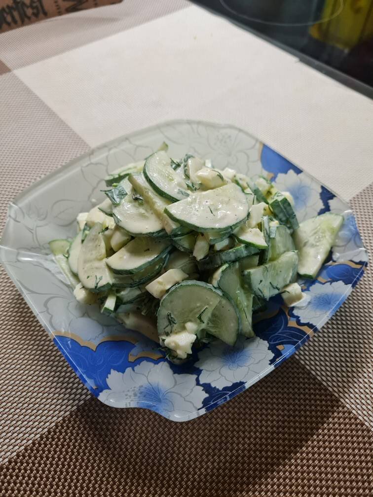 Ингредиенты: Огурец, Яйца варёные, Зелень, соль, перец, майонез