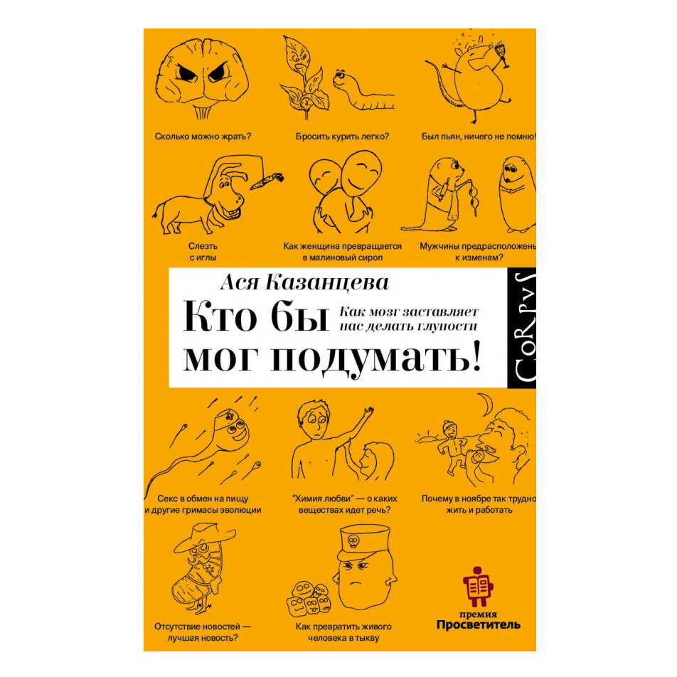 Итак, перед прочтением сделайте важную вещь - понюхайте свою вторую половинку. Сделали? А теперь инсайт: чем больше вам нравится запах пота вашего партнера, тем здоровее будут ваши дети! Этот и многие другие хитрости, которыми манипулирует и оперирует наш мозг в нашей жизни, описывает интереснейшая личность, о которой я узнал в подкасте kuji - нейробиолог, научный журналист Ася Казанцева. Кто читает мои обзоры, вероятно знает, что я - дикий фанат научно-популярной литературы. И это именно то, что интересно почитать, одновременно с этим рефлексируя и анализируя свое поведение в тот или иной период своей жизни. Кстати, для удобства в конце книги приведен краткий курс биологии для того, чтобы информация воспринималась более точно. Если вы желаете понять, почему, чтобы договориться, нужно обнять человека, или почему частый стресс может стать причиной онкологических заболеваний, то обязательно прочитайте этот труд!