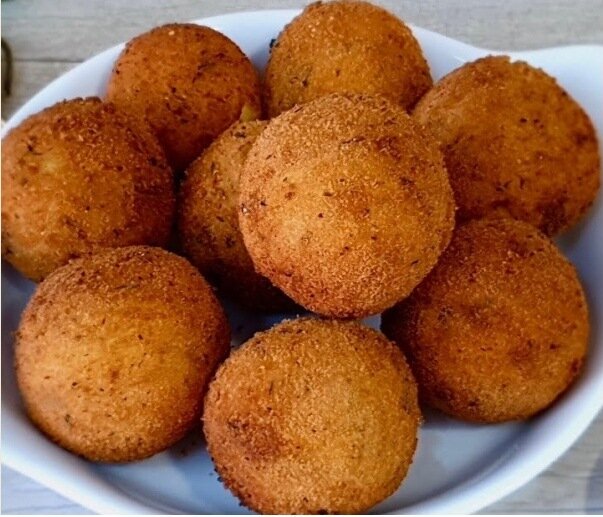 Рад Вас видеть на канале Здесь Вкусно. Однажды мне посчастливилось побывать во Франции на Новый год. Меня пригласили к себе друзья. Праздничный стол был очень скромным, но на нем меня заинтересовало одно блюдо, которое сразу бросилось мне в глаза. Как оказалось это были картофельно-сырные шарики. Мне они очень понравились! Как позже я узнал, это одно из частных блюд на французском праздничном столе. Я не мог уехать от них и не узнать рецепт их приготовления. Готовятся они очень просто, а процесс не занимает много времени. Сейчас я Вам все расскажу, но перед этим, прошу Вас подписаться, и не забыть поставить лайк (авансом). Очищаем 7-8 средний картошек и отвариваем их до готовности. Затем берем толкушку и начинаем толочь, как закончили нужно дать ей немного остыть (нам ее еще в руки брать). Далее к картофельной массе добавляем 2 ст. ложки муки и соли по вкусу. Все хорошо перемешиваем. Из полученной массы формируем небольшие шарики (как на фото). Каждый шарик немного разминаем и внут