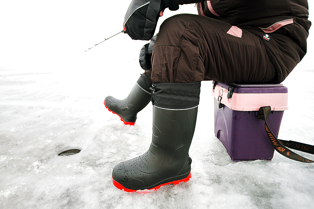 Мы всегда ездили и будем ездить на рыбалку в любую погоду. Неважно мороз на улице, тонкий лёд или слой мокрого снега, это азарт и ничего с этим не сделать. Самая частая проблема на зимней рыбалке – замёрзшие ноги. Основная причина обморожения это влага. Вода впитывается в утеплитель, и он теряет свои свойства. Поэтому важно сохранять свою обувь сухой. Что же делать, спросите вы? Влага появляется по следующим причинам: прокол обуви, потеют ноги или скапливает конденсат. Что бы избавиться от конденсата, нужно выбрать правильную обувь. Подошва должна быть с ячейками, а голенище широкое с затяжкой, что бы был зазор для естественной вентиляции. От пота помогут термоноски. Но поверьте, какая бы не была обувь, влага всё равно будет. Я пробовал подкладывать прокладки под стельки, брал запасные вкладыши, ставил стельки с подогревом и всё равно итог – ноги мокреют и замерзают. К счастью, за годы рыбалок я всё-таки нашёл решение. Достаточно поверх надеть общевойсковой защитный костюм. Кто служил