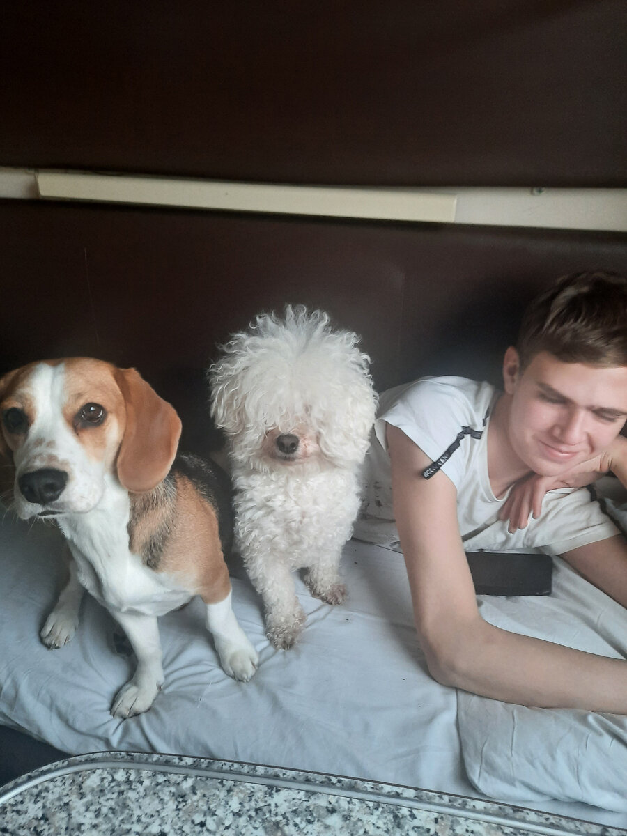 Сын пропустит много школы, но по-другому никак, в Краснодаре у меня совсем никого, оставить не с кем. А наш папа не изъявляет желание даже взять собаку, пришлось и их двоих везти с собой.