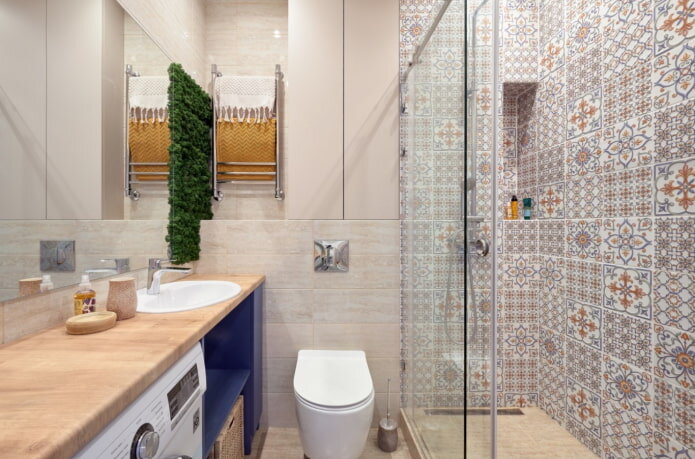 - Маленькая ванная комната. Каждый квадратный сантиметр должен быть использован с умом: Современные дизайнеры предлагают множество функциональных и экономящих пространство решений в этом отношении. Преимущество небольших помещений заключается также в том, что вы можете сэкономить на отделке, поэтому лучше всего выбрать более практичный и дорогой материал.