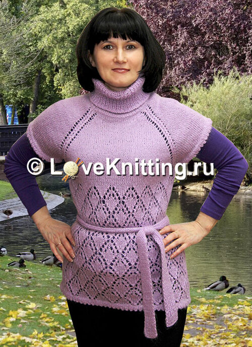 Пуловер вяжется на круговых спицах сверху вниз – от горловины до нижнего края изделия. Правильно распределив на спицах петли спинки, переда и рукавов, можно достаточно быстро и легко связать эту модель. Размер: M ВАМ ПОНАДОБИТСЯ УЗОРЫ Резинка 1 х 1 в круговых р.: попеременно 1 лиц. п., 1 изн. п.; Лицевая гладь в круговых р.: лиц. р. – лиц. п.; Узор, имитирующий регланный шов (4 п.): вязать по схеме 1, в изн. р. петли и накиды вязать изн. Повторять 1-2-й р.; Ажурный узор (10 п.): вязать по схеме 2, в изн. р. петли и накиды вязать изн. Повторять 1-16-й р. Ажурный круговой р.: (2 п. вместе лиц.(см. Азы), накид) – повторять до конца р. 2 п. вместе лиц.: см. Азы; 2 п. вместе лиц. с наклоном влево: см. Азы; 3 п. вместе лиц. с центральной петлей: см. Азы. ПЛОТНОСТЬ ВЯЗАНИЯ Лицевая гладь: 20 п. и 18 р. = 10 x 10 см. Внимание! Пуловер вяжется единым полотном без боковых швов сверху вниз. СПИНКА, ПЕРЕД И РУКАВА На круговые спицы № 2,5 набрать 90 п. и для воротника вязать резинкой 1 х 1 по кру