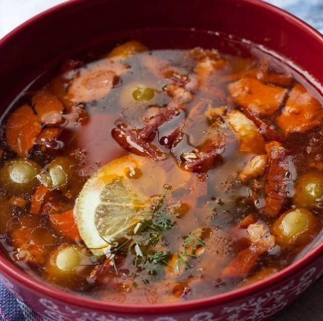 Суп-солянка пошаговый рецепт — очень простой рецепт. Его приготовление занимает минимум времени и сил. Кроме того, в качестве мясного компонента можно использовать то, что есть под рукой: сосиски, сардельки, колбасу различных сортов, говядину или свинину. В данном рецепте я использую сосиски.