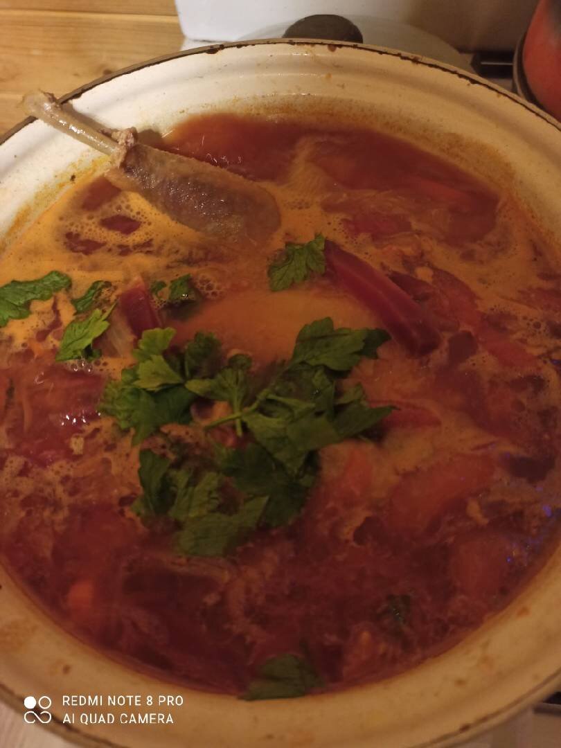 Домашняя курица имеет совсем иной вкус ,попробуй сварить борщ из домашней птицы и ты сама поймёшь отличие вкуса от курицы из магазина ,он иной ,правда варить придется дольше обычного. Ингредиенты: домашняя курица, бульон, картошка морковь, лук, капуста, фасоль белая в томате, соус сацебели, помидор Бакинский, свекла вареная Способ приготовления: Варить курицу 1 ч.30 минут. Бульон процедить. Посолить, приправить лавром и горошком. Добавить лук, морковь. Через 15 минут положить свежую капусту картофель и помидор. Варить 15 минут. Добавить банку фасоли с томатом. Добавить свеклу и выжать лимон половину. Соус Сацебели из томата 3 ложки. Варить 15 минут. Подавать со сметаной и зеленью.