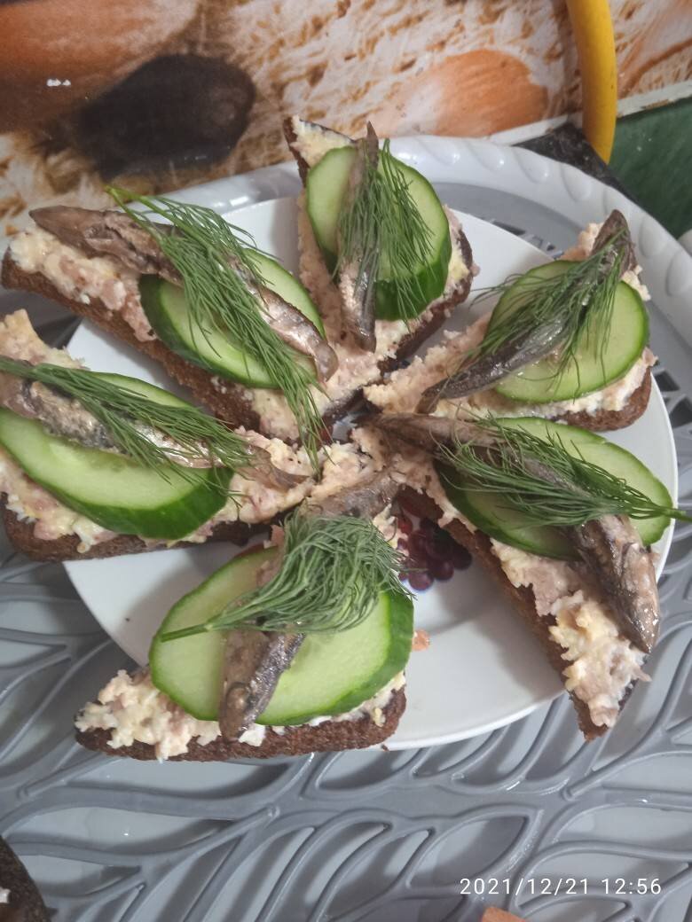 Поздравляю Всех с Новым годом!!!! Желаю Вам успехов в делах и начинаниях, прекрасного настроения и здоровья!!!!🌹🌹🌹🌹 Ингредиенты: Хлеб черный, Шпроты, Огурец, Сыр, Майонез, Чеснок, Яйца, Укроп для украшения Способ приготовления: Нарезать чёрный хлеб и обжарить до золотистого цвета. Приготовить Сиртаки, открыть шпроты и порезать огурцы кружочками На обжаренный хлеб мужем смесью из сыра, яиц и майонеза с чесноком и чуть с колбасой, сверху кладем огурец и шпротину или две( для украшения кладем веточку укропа, бутерброд готов. Приятного аппетита!!!!