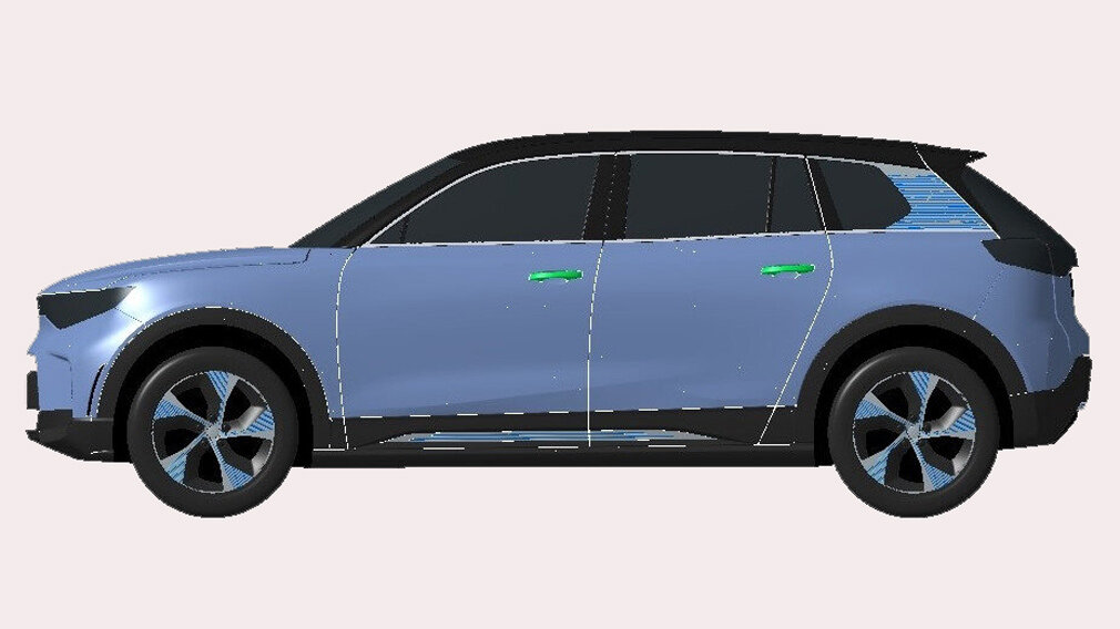 Спереди автомобиль имеет горизонтально расположенные блокфары. Оптика, скорее всего, выполнена по LED-технологии. Это оправдано, ведь стало уже своего рода нормой. Между фарами будет расположен монолитный щиток, имитирующий решётку радиатора. А вот настоящий приток воздуха (скорее всего) происходит через большое прямоугольное отверстие в бампере. Прямо в его центре находится постамент для рамки номерного знака. Углы защитного элемента имеют воздуховоды для охлаждения тормозных дисков. Но может оказаться, что это всего лишь декор.