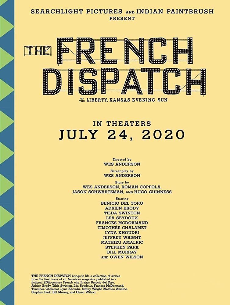 🎬 «Французский вестник. Приложение к газете ‘‘Либерти. Канзас ивнинг сан’’», 2021 «The French Dispatch», драма, мелодрама, комедия 🎟️ IMDb: 7,5 🎞️ Перед нами редакция, славные слуги печати и слова — офис газеты похож на муравейник, но суета только зримая, место радости занимает скорбь: славный главред (Билл Мюррей) уволен по причине смерти, коллеги вынимают из-за пазухи лучшие случаи из своей практики. Собрание удивительных историй, опубликованных на страницах последнего выпуска еженедельного американского журнала, который выходил в свет в вымышленном французском городе в середине двадцатого века. 📺 В ролях: Бенисио Дель Торо, Эдриен Броуди, Тильда Суинтон, Леа Сейду, Фрэнсис Макдорманд, Тимоти Шаламе, Лина Кудри, Джеффри Райт, Матьё Амальрик, Стив Парк, Билл Мюррей, Оуэн Уилсон. 😳 В актерском составе семь обладателей премии «Оскар»: Фрэнсис Макдорманд, Тильда Суинтон, Бенисио Дель Торо, Кристоф Вальц, Эдриен Броуди, Анжелика Хьюстон и Фишер Стивенс; девять номинантов на «Ос