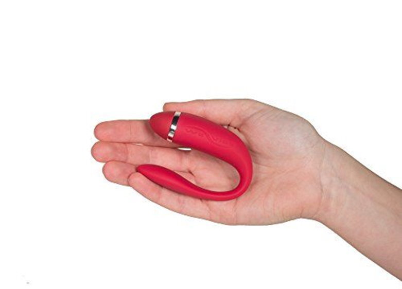 Двойной вибратор We-Vibe Special Edition, который предназначен для использования во время занятий сексом с партнером, имеет небольшие габариты. Он с легкостью помещается на ладони.