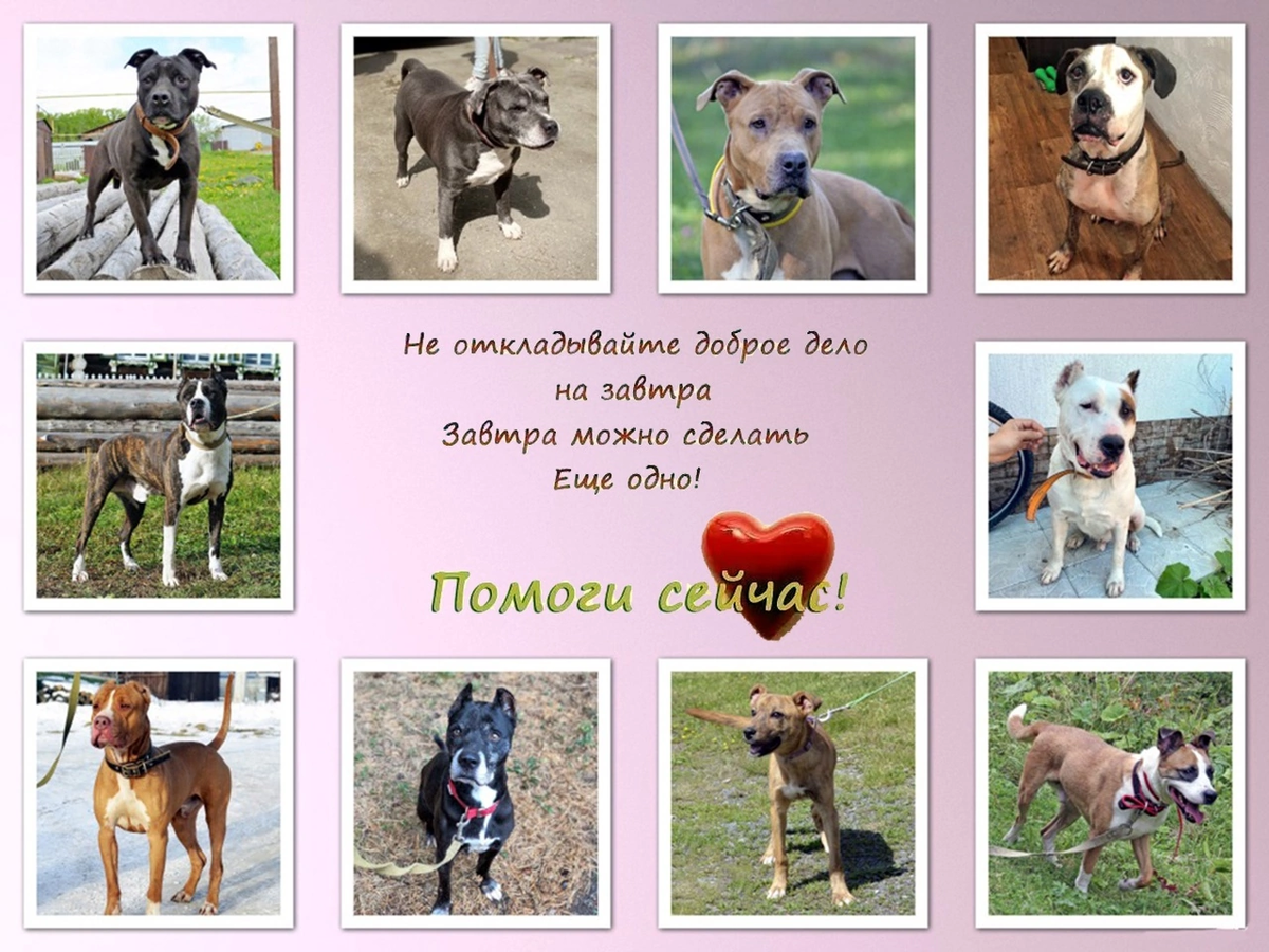 По возможности, мы занимаемся помощью брошенным пито-стаффам, попавшим в беду, оставшимся без крова, хозяина, еды… Пито-стаффы – это одна из тех пород, которая крайне зависима от человека. Эти собаки, при попадании на улицу, не умеют найти себе пропитание и безопасное укрытие. Из-за короткой шерсти они не могут согреться в холода. Их не принимают и изгоняют уличные стаи(даже щенков), боятся многие люди. Но для данной породы жизнь и выживание возможно исключительно с человеком. И собаки идут за помощью к людям, которые далеко не всегда оказываются добры. И если обычная дворняжка имеет хоть какой-то шанс на то, чтоб эта мечта сбылась, то выброшенные и потерянные Амстаффы и Питбули этого шанса не имеют – их на улице ждет только смерть. Их не берут в приюты и на передержки, их не отлавливают, а отстреливают… СМИ сыграло с представителями данных пород злую шутку, представив неопытной аудитории этих общительных, ласковых, преданных, любвеобильных животных, как «собак-убийц», «бойцовских