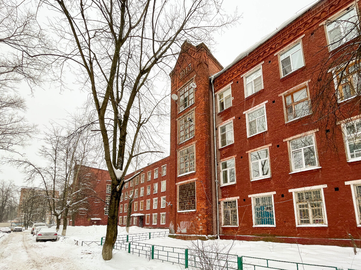 Рабочий поселок Дедовск преобразован в город в 1940 году, но еще в 1911 - 1913 здесь были выстроены четырехэтажные казармы рабочих прядильно-ткацкой фабрики. На казармах красуется год постройки: 1913. Это шикарное историческое здание до сих пор верой и правдой продолжает служить людям. Казармы стоят прямо в самом центре города Дедовска. Напротив - Дом культуры и филиал РГСУ. Перед казармами стоит памятник Владимиру Ильичу. Конечно же, я зашел внутрь, чтобы посмотреть, как сейчас выглядят эти казармы внутри. В настоящий момент в здании располагается общежитие. Отмечу как плюсы, так и минусы проживания в нем. Прежде всего: на входе сидит консьержка. Безусловно, это преимущество. Отмечу красивое советское панно с правой стороны. В общежитии огромные холлы, можно разместить любые предметы быта, которые не влезут в малогабаритную квартиру. И это не только велосипеды. Например, сушилки для одежды. А еще можно поставить санки, коляски, электросамокаты... Между коридорами есть огромный холл, п