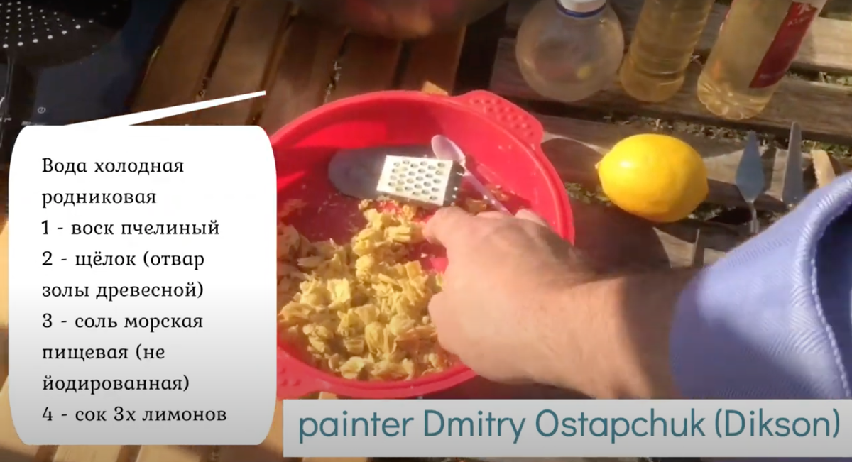 Приготовление "Пунического воска" из пчелиного воска и подручных доступных средств . ПУНИЧЕСКИЙ ВОСК - искусственно отвержденый пчелиный воск применяемый в древности для энкаустики и для создания различных водооталкивающих защитных пропиток для камня, дерева и пр. Задача, которую мы поставили перед собой - максимально точно воспроизвести технологию получения "Пунического воска" с учетом доступности в быту человека жившего более 2000 лет назад необходимых ингридиентов. За основу были взяты тексты античных историков и ремесленников, а так же работы современных исследователей в области реставрации Фаюмских портретов и античных фресок. Метод многократно повторён с неизменным результатом. Воск обработанный таким методом становится стоек к бытовым щелочам и более терпим к повышенной температуре и более прочен. Доказательство доступности в быту древнего грека всего необходимого для обработки воска : - В Древней Греции щёлочь для омыления - поташ (щёлок) был распространен повсеме