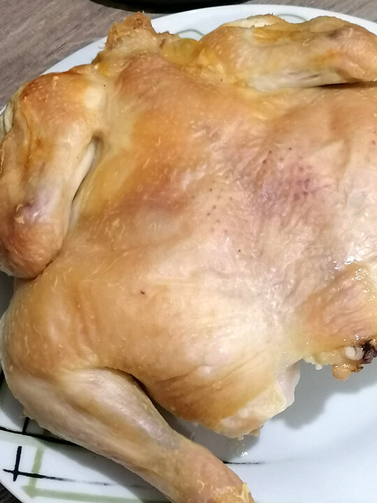 Итак, как сделать ужин без усилий? Крааайне ленивый рецепт курицы на соли. Если Вы давно знаете об этом рецепте, но не решались, как я, ибо вдруг много соли, докладываю - однозначно сто́ит попробовать сделать. Делается на раз-два-три :) Раз - берём курицу и соль (помол не важен), кладём одну на другую. Больше НИЧЕГО не добавляем Два - ставим в разогретую до 180-200 градусов духовку на 45 минут - 1 час в зависимости от величины курицы и мощности духовки. Три - вынимаем, добавляем гарнир (в идеале овощи, но тут уж как фантазия подскажет), и с удовольствием едим (пожалуй, это всё же четвёртый пункт) Отвечая на возможные вопросы, которые и у меня возникали (рецепт попадался давно, но было страшновато, что раз так много соли, ничего диетического даже близко не получится) -нет, курица получается не пересоленная, а совсем слегка солёная, некоторые домашние аж досолить собирались. Соль не впитывается, а уплотняется на форме, куда стекает жир от курицы, и просто парами солёными курица пропиты