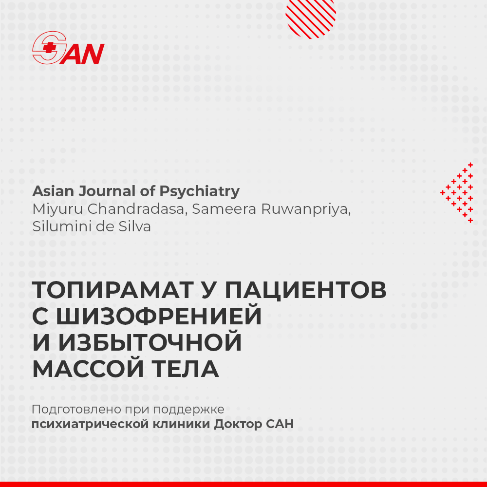 Более высокая смертность из-за сердечно-сосудистых заболеваний наблюдается при шизофрении из-за самого расстройства и использования нейролептиков. Жители Южной Азии более уязвимы к развитию метаболических нарушений, чем другие. Топирамат может быть полезен для снижения веса и уменьшения психопатологической симптоматики при шизофрении. Однако в Южной Азии было проведено только одно рандомизированное контролируемое исследование (РКИ), в котором проживает четверть населения мира.