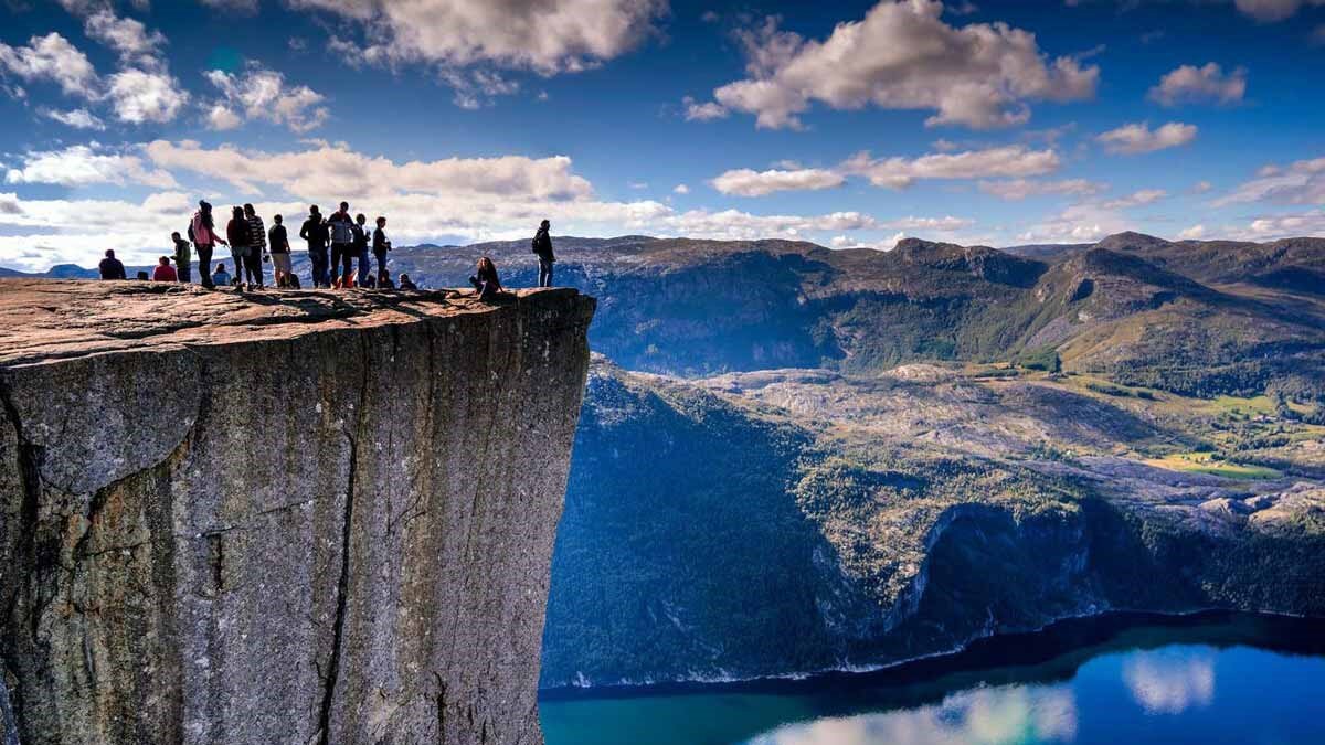 Хотели бы посидеть на высоте в 604 метра без страховки? Если вы настолько бесстрашны, то у меня для вас отличные новости - в Норвегии есть утес именно такой высоты. Это скала Прекестулен. Или, Кафедра Проповедника. Если вы окажетесь в Норвегии, то вам обязательно стоит посетить это место, чтобы в полной мере познать все величие и масштабы природы этой страны. Как добраться до Кафедры Проповедника Чтобы добраться сюда, вам нужно будет сначала доехать до города Ставангер. Всего лишь один час езды от этого города и вы окажетесь на парковке отеля Прекестулен Фьелльстуэ. Здесь можно выбрать удобный туристический маршрут. Прежде чем идти к скале, рассчитайте свои силы. Вам придется в течение 3 часов идти по горам. А это отнимает в несколько раз больше сил, чем просто идти по ровной дороге. Да, и если вы не хотите подниматься сюда, то можно воспользоваться паромом. Тогда путь займет всего лишь один час, а вы насладитесь невероятным видом на скалу со стороны воды. Для того, чтобы взобраться на