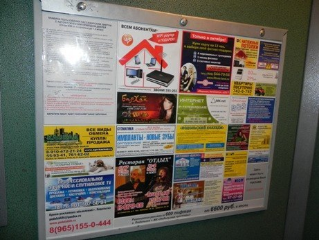 У многих наверно в подъезде висят щиты подобного вида, в которых некая компания предлагает рекламу за вполне реальные деньги. Без согласия жильцов такие щиты повесить не удастся, а значит, скорее всего, такие щиты у вас висят незаконно.