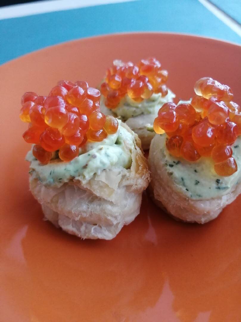 Быстрая вкусная закуска, можно подавать и с икрой, и со слабосоленой красной рыбой. Немного времени и можно удивлять гостей. #тарталетки #авокадо #икра Ингредиенты: слоеного бездрожжевого теста, авокадо очищенного, творожного сыра (у меня Хохланд), укропа, Смесь перцев , желток яйца Способ приготовления: Разморозить тесто согласно инструкции. Вырезать стаканом круги и ободки к кругам. У меня 12 больших и 12 средних по размеру. Выложить на сухой противень и смазать круги желтком, положить на каждый круг ободок и тоже смазать желтком. Затем накрыть пищевой плёнкой и убрать в холодильник на 30 мин. Приготовить крем. Авокадо, творожный сыр, специи и зелень взбить в блендере до однообразно массы. Выпекать тарталетки при 180 градусов в разогретой духовке 10 мин. Аккуратно примять середину ложечкой. Остудить. Выложить крем, украсить сверху ломтиками солёной рыбы или икрой.
