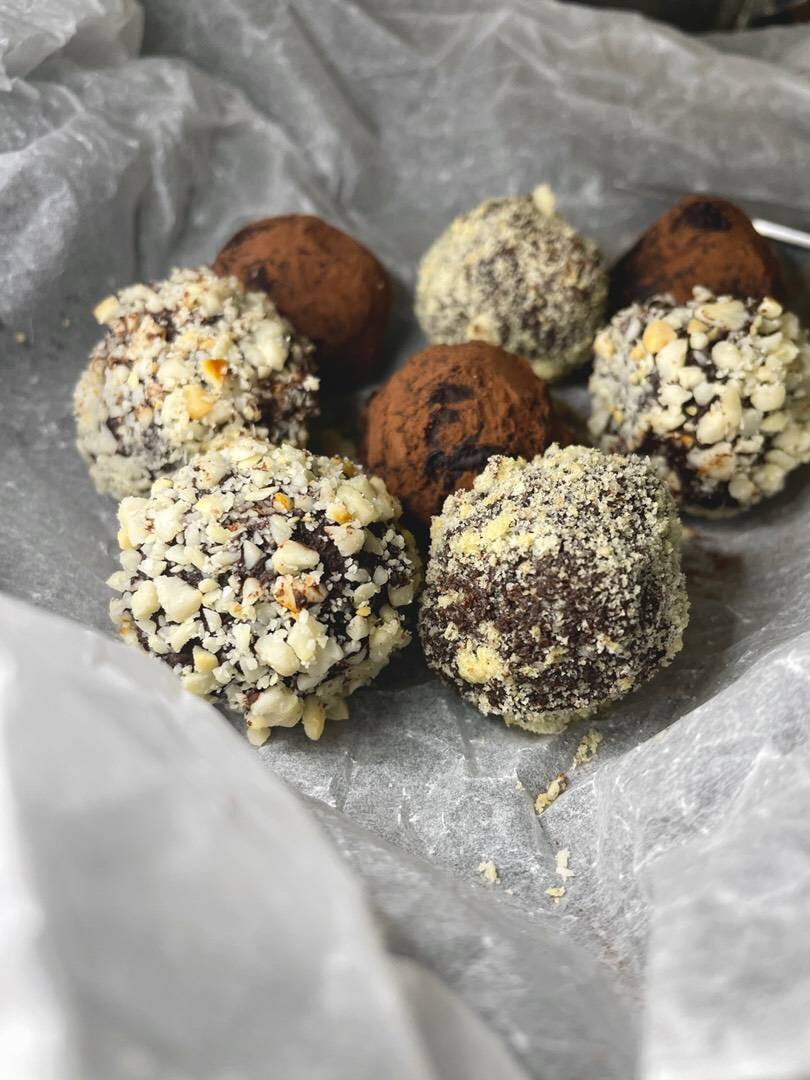 Рецепт: на 16 трюфелей по 15 гр каждый, я отвешивала на весах, форму не сильно ровную катала, хотелось передать домашний эффект Ингредиенты: сливок 33%, шоколада 55-60%, сливочного масла 82% Способ приготовления: Шоколад растопить на водяной бане или в микроволновке импульсами. Сливки довести до кипения, оставить. В шоколад ввести тёплые сливки, добавить сливочное масло (масло комнатной температуры добавляла), перемешать. Пробить погружным блендером, если есть, если нет тщательно все перемешать. Накрыть плёнкой «в контакт» и убрать в холодильник до загустения. Скатать шарики, делайте это обязательно в перчатках. Обвалять в какао, кокосовой стружке, измельчённом арахисе, вафельной крошке, короче что ваша шоколадная душа пожелает 🙃 Сохраняй рецепт чтобы не потерять 💝