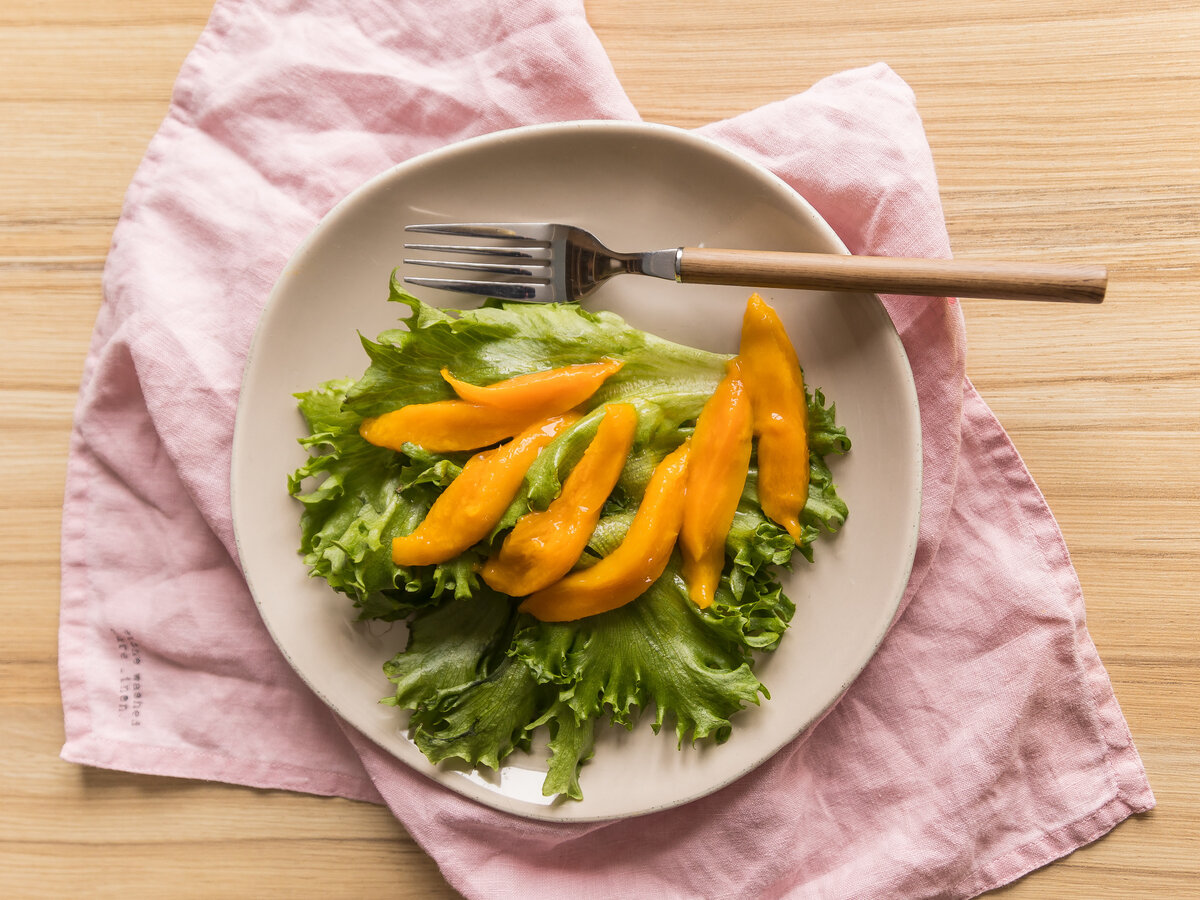 Изысканный салат для девочек – манго в беконовом кафтанчике