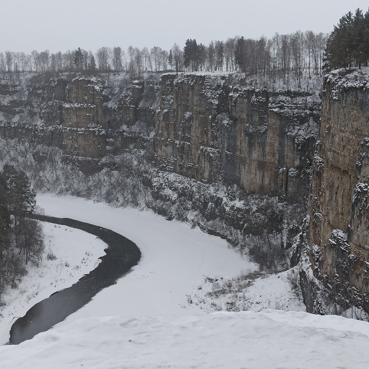 Большие Айские притесы. Я была там много раз, но всё время летом, во время сплавов по Аю, а вот зимой - впервые. Притесы - одна из самых известных достопримечательностей Лунной реки (реки Ай). Высота скалы - 98 метров, протяженность - около двух километров.