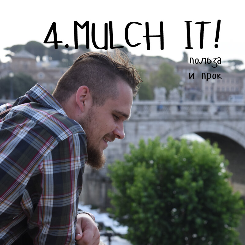 4. Не использовать мульчу - глупо. Мульча это в целом влаго воздухопроницаемый материал, которым укрывают землю от излишнего охлаждения, перегрева, испарения влаги, улучшения воздухообмена, обеспечения правильного покоса механизированных машин/косилок/триммеров - когда культурное растение отделено от газона, более качественного внесения удобрений непосредственно к корням растения, привлечения и обогащения почвенной фауны и птиц, значительного поражения почвы вокруг культурных растений нежелательными сорными растениями (тратить силы, нервы и деньги на прополку можно будет существенно меньше).