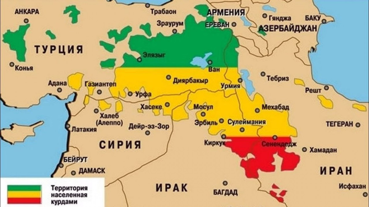 Курдистан на карте Ближнего Востока