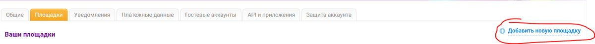 2. Переходите в настройки (в правом верхнем углу экрана). Вам нужно добавить "площадку" - место, где вы будете давать свои ссылки.