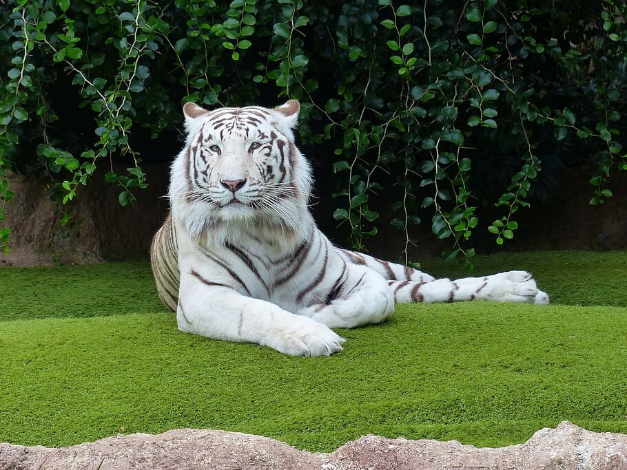 Белый тигр – это мутировавший бенгальский тигр. Случаи рождения белых тигров возможны лишь при рецессивном гене обоих родителей, шансы на это настолько малы (1 к 100000), что им грозит вымирание. Интересно также то, что часто белые тигры имеют косоглазие и ряд других заболеваний, т.к. скрещиваются родственные особи. Живут белые тигры совсем мало – около 10 лет.