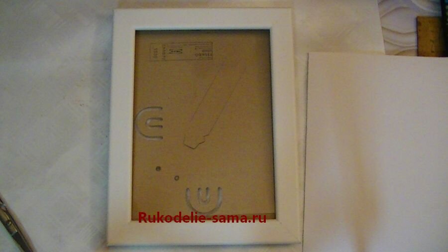 Открываю рамку, снимаю картонку и по ее размеру вырезаю бумагу для будущего фона картины