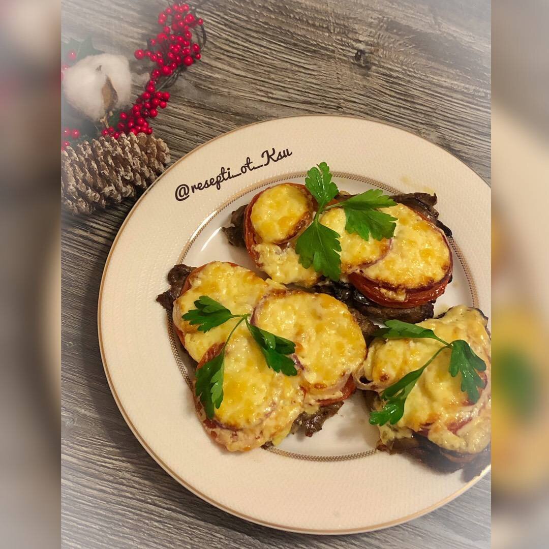 Румяное, вкусное и сочное мясо, наполняет всю квартиру свои ароматом, оно красиво смотрится за ужином или на праздничном столе. #новыйгод Ингредиенты: вырезки говяжьей, До маринования мясо:, чеснока, майонеза, соль, перец , Для обжарки шампиньонов, резаных шампиньонов, сливочного масла, соль, Начинка, помидора, репчатого лука, сырная начинка:, сыра, майонеза, зелень по желанию Способ приготовления: Подготавливаем ингредиенты: лук очищаем и нарезаем на кружочки, помидоры тоже нарезаем на кружочки. Мясо вырезки нарезаем на порционные кусочки 100 гр -120 гр, отбиваем мясо через пакет или пищевую плёнку кухонным молоточком, кусочки должны получиться ~ толщиной 0.7- 1 см. Отбитое мясо выкладываем в тарелку, солим, перчим, выдавливаем чеснок, добавляем майонез и хорошо всё перемешиваем, накрываем пищевой плёнкой и оставляем в сторону. Теперь займёмся грибочками: нарезаем шампиньоны на ломтики или как в моем случае уже нарезанные. Разогреваем сковороду, добавляем сливочное масло, грибы и обжа