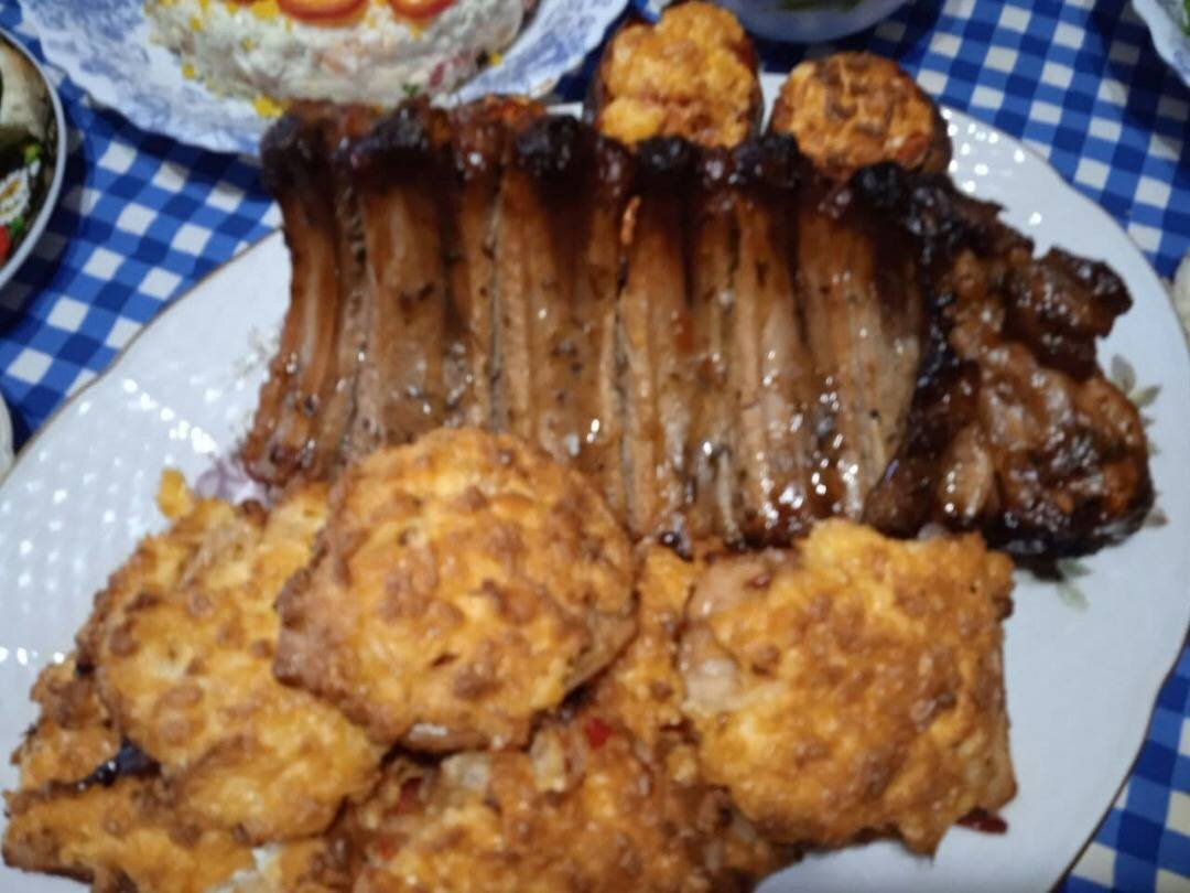 #новыйгод Очень вкусное мясо, приготовить можно как на праздник, так и в другой день. Справиться с этим может даже начинающий кулинар. Ингредиенты: Свинины, Репчатого лука, Твёрдого сыра, Майонеза, Чёрный молотый перец, Соль, Зелень, Растительное масло для жарки Способ приготовления: Мясо (для отбивных) помыть, обсушить, нарезать ломтиками толщиной 1 см, отбить, посолить, поперчить. Отбивные положить на противень, смазанный маслом. Сверху положить нарезанный полукольцами лук. Сыр натереть на мелкой тёрке и смешать его с майонезом. Поверх лука выложить сырную массу и равномерно распределить её по поверхности отбивной. Запекать в разогретой духовке до 180 градусов 30-35 минут (сверху из сыра должна образоваться сплошная аппетитная румяная корочка). При подаче посыпать измельчённой зеленью. Приятного всем аппетита!