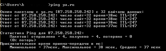 Рассмотрим перечень полезных команд для работы с сетью. Начнем мы с самой известной команды в любой ОС - PING. PING Ping (packet internet groper) - команда позволяющая определить качество соединения в сети, т.е. показывается происходит ли обмен денными с конкретным IP адресом или доменом, и если есть соединение, то будет показываться скорость обмена. В данном случае говорят - "пинг есть". Вы можете спросить, что значит "TTL"? Кратко ответить не получится, будем посмотреть. Аббревиатура TTL - Time To Live (время жизни). То есть TTL является временем жизни отправляемого пакета. Это предельный срок, в течении которого пакет может перемещаться по сети. Время жизни задается в секундах инициатором передачи. На пути пакета на каждом маршруте по истечении секунды вычитается единица из его времени жизни, так же единица вычитается, если задержки на проходимом оборудовании будут меньше секунды, так как современные маршрутизаторы редко обрабатывают пакеты дольше, чем за одну секунду. И выходит та
