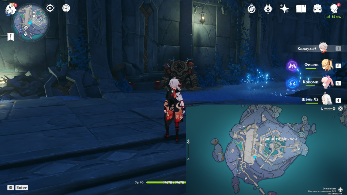 Впервые за прохождение Инадзумы я доволен загадками. В Энканомии они все приятные. Если вы уже открывали тайную комнату, то знаете, что бочки у стены могут проделать в ней новое отверстия аккурат для вашего героя. В Дайнити Микоси можно найти еще одни. Возможно вам так же будет интересно: Неочевидные мировые квесты и скрытые достижения патча 2.4 Чтобы открыть проход нужно взорвать бочки. Войдя внутрь вы увидите 2 монумента которые сможете активировать. один во время вечной ночи, второй во время белой ночи. Начать нужно с монумента вечной ночи. Переключатели в локации. Самый ближней к телепорту отмечен После активации обоих монументов вам нужно будет переключиться в режим Бесконечной ночи и активировать рисунок на стене. Теперь вам нужно отправится в Сердце Змея и повторить порядок активации. Альтернативная пикча для активации В награду вы получите... Книгу "На свету, под тенями" для квеста Собрания драконов и Змей. Еще одну книгу вы можете получить из Испытания Датэ.