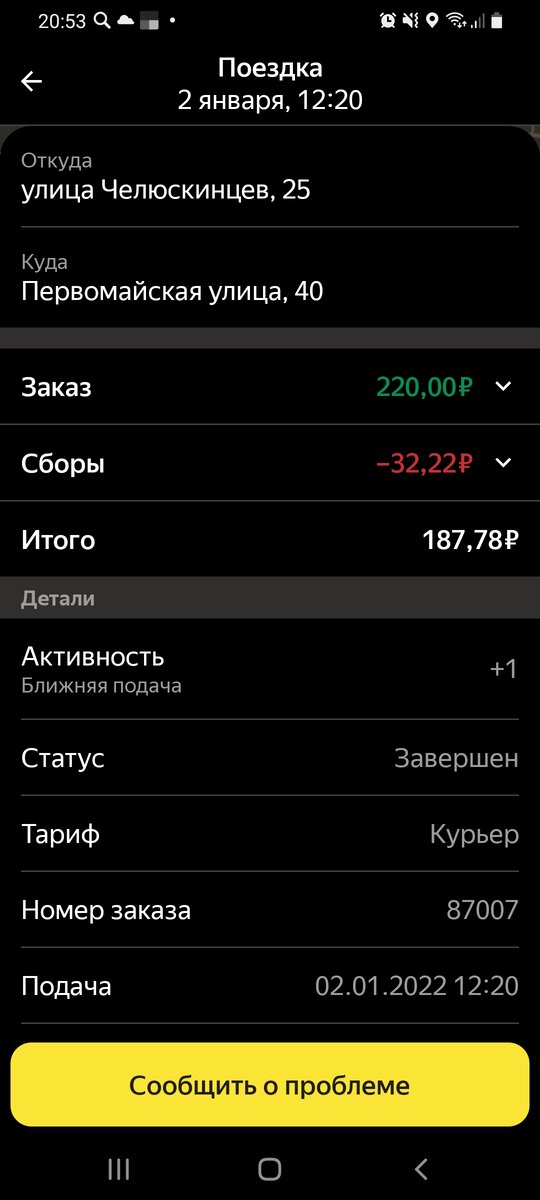 В этот день я проснулся в 11:00, умывшись и позавтракав, я взял рюкзак и поехал в центр Екатеринбурга на площадь 1905 года. Когда я подъезжал к Ж.Д Вокзалу, Яндекс просигнализировал мне,чтобы я все бросал и срочно бежал на Челюскинцев 25, в магазин "ВкусВилл", забрал заказ и дул на Первомайскую 40. Поскольку я находился в 600 метрах от точки отправления, я отправился в сторону магазина, забрал пакет и поехал на трамвае к получателю. Приехав на место, я немного растерялся, поскольку на доме, к которому меня привел навигатор, висела табличка, которая сообщала, что это здание находится на Ленина 69/14. Но получатель мне объяснил, когда я в панике ему позвонил, что это строение имеет два адреса. Успокоившись, я поднялся к клиенту и вручил его заказ. Когда я выходил из подъезда на встречу мне шла женщина с собакой. Пес, увидев меня, решил что встретил вражину с рычанием и лаем бросился в мою сторону, чуть не уронив хозяйку. Поскольку дверь подъезда уже закрылась