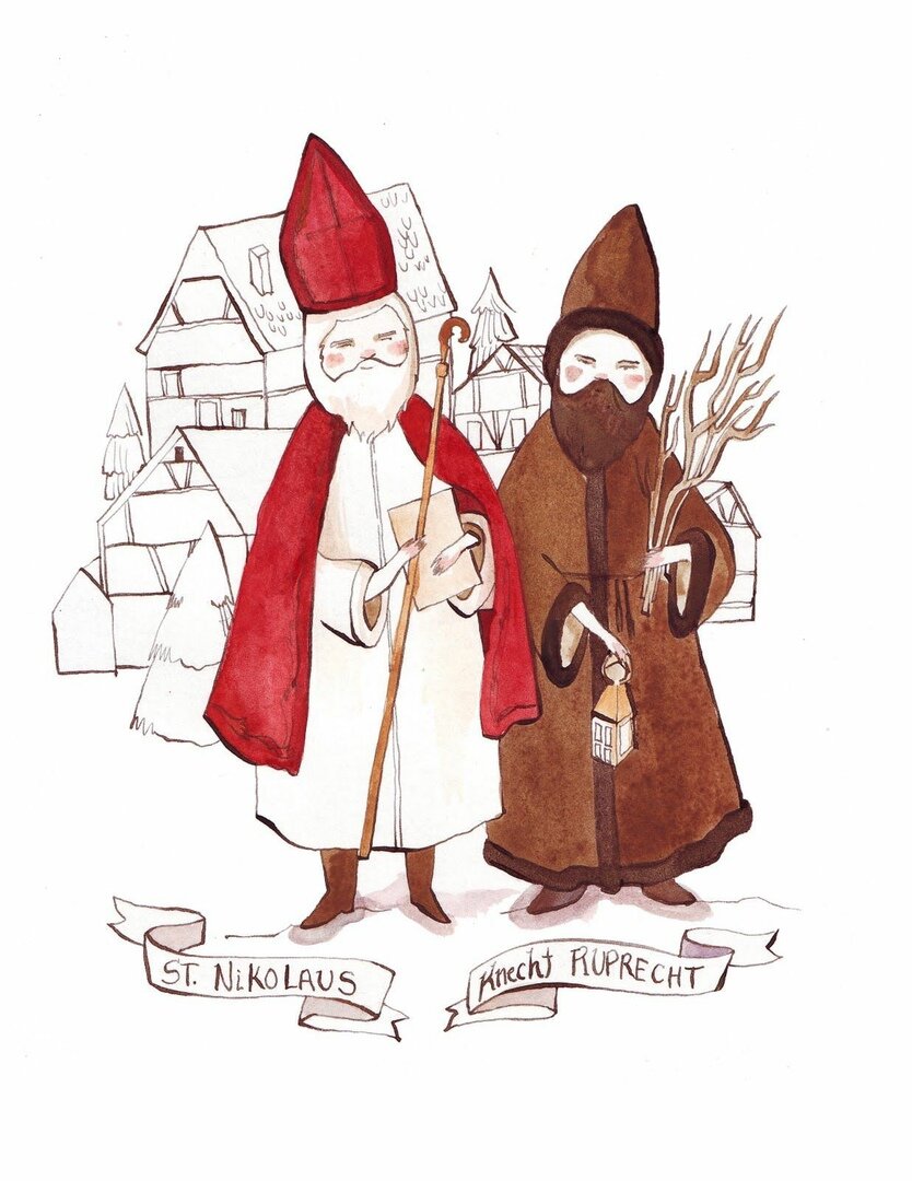 Рупрехт в немецком фольклоре сопровождает Святого Николая во время рождественского шествия. Рупрехт впервые появляется в письменных источниках в XVII веке — как одна из фигур во время рождественского шествия в Нюрнберге. В Мекленбурге его называли «Грубый Николай».