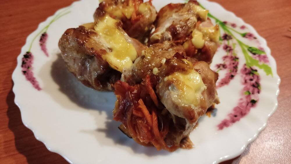 Подойдёт как для праздничного блюда, так и для ужина Ингредиенты: Филе бедра курицы, Лук репчатый или зеленый, Корейская морковь, Чеснок, Соевый соус, Сыр, Томатный соус, специи, Кабачка, Сметана Способ приготовления: Помыть филе. Обсушить и отбить. Уложить мариноваться. Я делаю так: кладу в один слой филе, посыпаю сухой аджикой, рубленым чесноком, заливаю соевым соусом. Солить не нужно. Убрать в холодильник на день. Нарезать лук, кабачок, сыр. Достать филе. В центр уложить лук, морковь корейскую, кабачок, сыр. Свернуть в рулетик и заколоть зубочисткой. Сверху обмазать сметаной. Залить томатным соусом, примерно на 1/4. У меня острый кавказский. И убрать в духовку на 50 минут. У меня газовая 180°. Приятного аппетита!