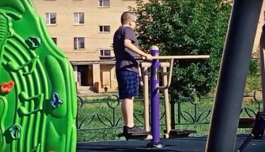 С детьми он, естественно, не играл. И вообще никак к этому даже не стремился. Весь наш заход на площадку заключался только в том, что он лазил по всем доступным ему тренажёрам и всё. Уходил.