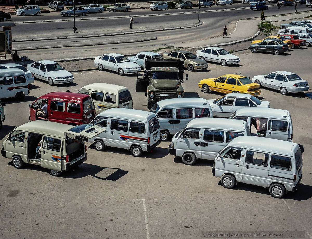 Нет, ЗиЛ не маршрутное такси! Хотя, не удивлюсь, если в Узбекистане можно и на ЗиЛе куда-то доехать. В Грузии, например, видел самосвал, везущий людей в кузове через горный перевал. Чем Узбекистан хуже!? Надо ли говорить, что самая популярная марка в Узбекистане - это Daewoo, естественно произведенная тут же, а не в Южной Корее. Особенно прикольно было видеть Daewoo Matiz в качестве Такси, впрочем, это еще цветочки, как вы поняли. Особенность Узбекистана - почти все автомобили на газу или бензине. Дизель на заправках вроде и есть, но стоит подъехать, как его вдруг не оказывается. Зато тут же прибегают мальчики с канистрой и начинают с тобой торговаться, за сколько ты купишь солярку у них. Про "цветочки" я конечно же говорил в плане маршрутных такси. Кому тут еще не нравятся Газели в качестве маршруток!? В Узбекистане в этом плане работают Daewoo Damas! Я когда-то хотел купить себе этот крошечный микроавтобус, но в хорошем состоянии и по доступной цене они редко появляются в продаже. Б