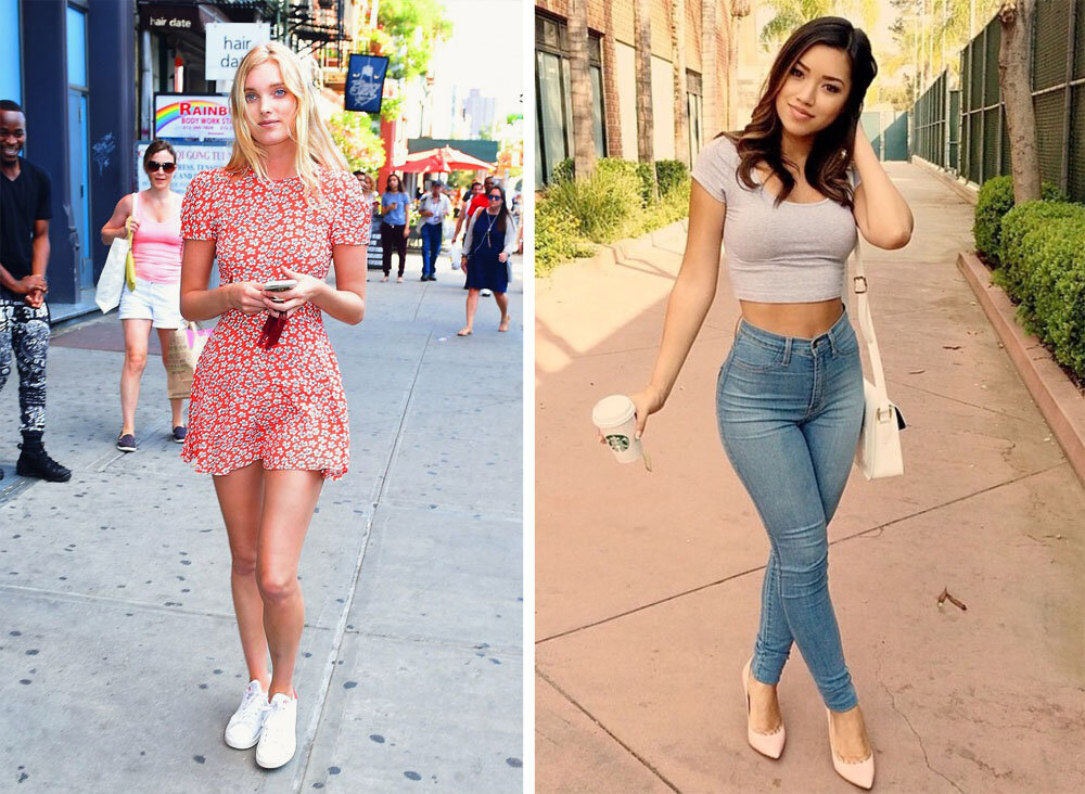 Туфли-лодочки с платьями и кроссовки с джинсами