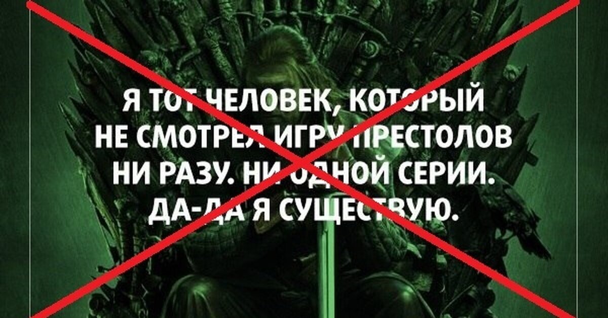 И теперь очень жалею, что не сделала этого раньше. Честно говоря, не помню, почему же не стала смотреть этот нашумевший сериал на пике его популярности. Хотя, среди моих знакомых сплошь были фанаты, которые бурно обсуждали каждую серию и неистово ждали следующих сезонов. Ну вот никак не вдохновляли на просмотр. Вроде бы я даже пыталась начать смотреть, потому что есть у меня привычка иметь свое мнение о том, что интересно всем, но, кажется, не зашло. Начало показалось слишком жестким для меня. Решила, что это ужастик. А ужастики я не люблю. Потом пару раз на глаза попадались какие-то отрывки, когда сериал смотрели при мне, и опять какая-то жесть. Решила, что весь сериал такой. Ну нафиг... В конце-концов, можно посмотреть что-то другое. Так я и попала в ряды тех, кто лайкал в соцсетях вот такие посты Не то, чтобы я этим гордилась, но... Ну, подумаешь, не понимаю огромное количество мемов, над которыми другие смеются Есть же другие. В конце-концов невозможно же посмотреть все, что сним