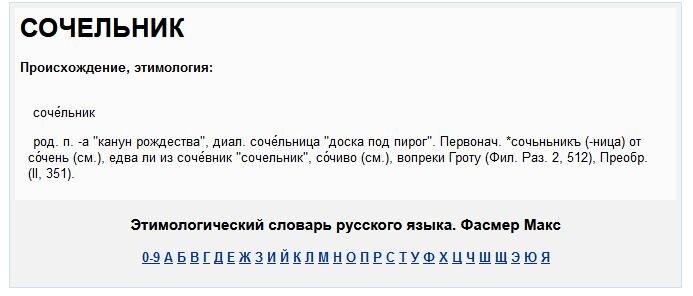 Может быть, господа лингвисты, расскажут, как "сочиво" превратилось не в "сочевник", а в "сочельник"? И почему "кочевник" тогда в "кочельник" не превратилось за 300, пардон, 230 лет ига? Того самого, татаро-монгольского.