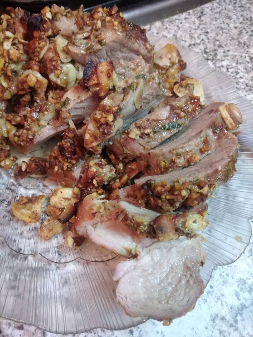 Отличное получилось мясо на #новыйгод Простой в приготовлении рецепт, подойдёт и для застолья на #рождество . Сочное мясо, необыкновенный вкус. #запеченноемясо из моего любимого журнала "Новогоднее угощение" 2011 года Ингредиенты: мякоти свинины, чеснока, миндаля, меда, горчицы, майонеза, соль, специи, зелень Способ приготовления: В разогретый мед добавить горчицу, майонез, соль, специи, зелень и перемешать. Мясо (в рецепте указана шея, я взяла окорок) вымыть и обсушить. Замариновать мясо в медовой смеси на несколько часов. Если времени нет, можно запекать и сразу. Завернуть мясо в фольгу и запекать в духовке 30 минут. Орехи обжарить на сухой сковороде и крупно нарубить. Чеснок почистить и нарезать пластинами - "лепестками". Мясо вынуть из духовки, снять фольгу и распределить по нему чеснок и орехи, полить остатками маринада. Запекать до румяной корочки ещё около полутора часов. Вкуснятина. Сочное и вкусное, даже холодное. Представляю оригинальный рецепт.