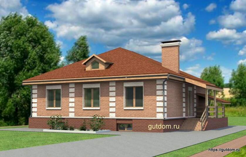 Проект одноэтажного дома может быть переработан под строительство из любых кладочных материалов: из газобетона, других блоков или кирпича. Планировка дома, точнее первого этажа, включает четыре спальные комнаты, гостиную, кухню-столовую, ванную, тамбур и коридор. Помещение котельной (теплогенераторной) предусмотрено в подвале. Площадь котельной проектируем согласно СП - своду правил по проектированию и строительству. В СП четко прописаны все параметры для котельных. Вход в цокольный этаж предусмотрен отдельным с улицы. Примерные размеры коттеджа в плане составляют 12х12 метров, - это без входной группы (крыльца и лестницы в подвал). #проект одноэтажного дома дома с четырехскатной крышей, дормером представлен как концепция и может выполняться как с подвальным, так и цокольным этажами по желанию клиента. В зависимости от типа грунта, рельефа земельного участка, стены подвального (цокольного) этажа можно спроектировать из ФБС (фундаментных блоков) или монолитного армированного бетона. Че