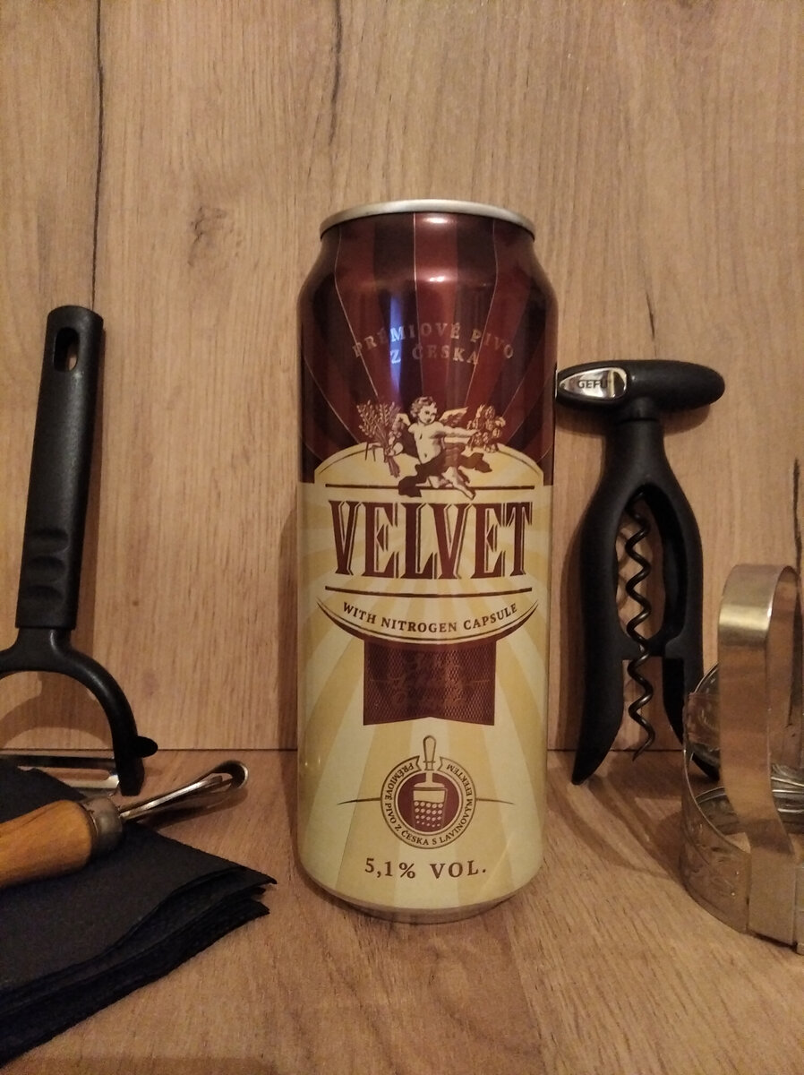 Пиво Velvet лучше всего пить в баре на розлив, там оно вкуснее. Однако поскольку я уже давно по барам не люблю ходить, то было решено приобрести на обзор баночный вариант. Тара имеет объём 0.5л, но так как ради придания "лавинного эффекта" внутри находится пресловутая капсула с азотом, то пиву остаётся только 0.44л. Цена вопроса 150р в Ароматном Мире. Velvet увидел свет в 1997 году, тогда его начала выпускать компания «Старый источник». Тогда же пиво получило пару местных наград за лавинный эффект и мягкий кремовый вкус. На мой взгляд заслуженно. После вступления в ЕС местные производители начали массово выкупаться пивгигантами и в 2005 случилось поглощение крупным американским производителем Molson Coors Brewing Compan. А в 2019 г. Velvet обратно перекупили чехи, на сей раз постарался Staropramen. Само пиво по счастью никак не пострадало. Слегка охладил, наливаю. Капсула действительно есть и работает как следует. Сперва в бокал наливается сплошная пена светло-кремового цвета, которая