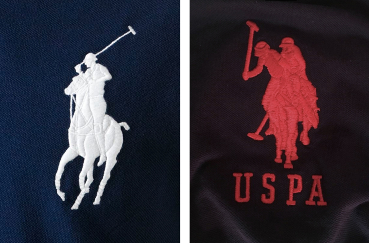 Если на логотипе Polo Ralph Lauren изображен один всадник, то в случае с U.S. Polo Assn. их два. Под рисунком присутствует надпись USPA, а на съемных этикетках часто присутствует надпись «NOT AFFILIATED WITH POLO RALPH LAUREN CORP» («Не связано с Polo Ralph Lauren Corp»).