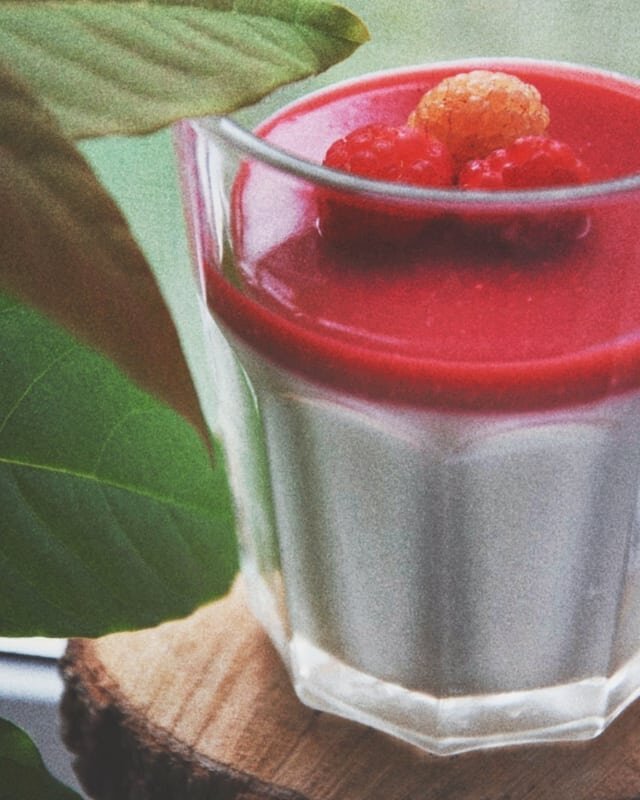 Итальянский десерт Панна-котта, любителям желейных десертов посвящается 🤗 Среди допустимых вариантов в русском языке и "панакота" и "панна-кота" ( по крайней мере, так пишут в интернете), но не суть - главное вкус 😋 Я делала с малиной, Вы же можете добавить и другие ягоды, фрукты, а можно и вовсе сделать многослойник) Рецепт на 4 персоны. 📎Сливочная основа : 🌿Сахар-песок 2 ст. л. 🌿Сливки 20-22% 250 мл 🌿Молоко коровье 250 мл 🌿Желатин пакетик 🌿Вода холодная 3 ст.л Сливки, молоко смешать в кастрюле, добавить сахар. Нагреть до 70-80 град. не доводя до кипения. Желатин развести в холодной воде, оставить растворятся ( см. инструкцию на упаковке). Добавить в горячую смесь сливок и молока. Размешать до полного растворения. Остудить. Разлить жидкость в посуду. Поставить в холодильник на 1-1,5 часа. 📎Ягодная часть: 🌿Малина 150 гр 🌿Сахар 1 ст.ложка 🌿Желатин 1 ст. ложка 🌿Вода холодная 4 ст. ложка Малину и сахар разбить блендером. Желатин развести в воде . Малину пропустить через кр