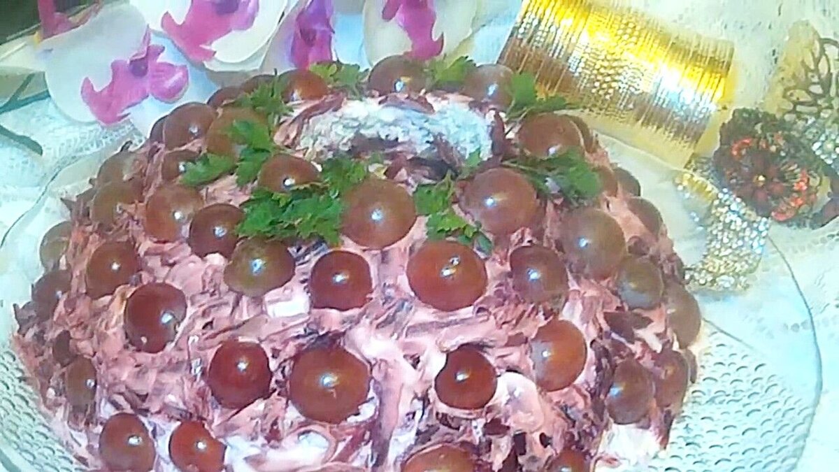 Вкусный и интересный слоеный салат. Красиво смотрится на праздничном столе. А сочетание курицы и винограда - одно из самых моих любимых. Виноград выбирайте без косточек. В данном рецепте я использовала виноград Ред Глоуб. Он очень сладкий, но пришлось выковыривать косточки из каждой виноградинки) Ингредиенты Как приготовить